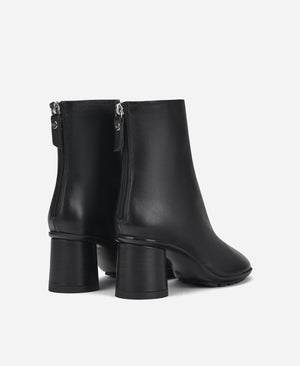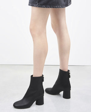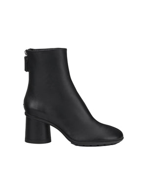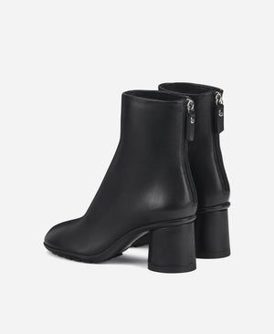 The soft nappa leather ankle boot has soft, rounded lines and is quick to put on thanks to the practical rear zipper. The rounded shape and cylindrical heel give extra comfort. The rubber sole is the extra detail for a pared-back model that promises to be the season's best seller.