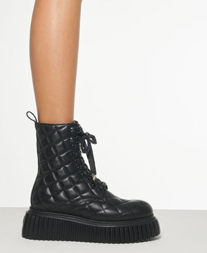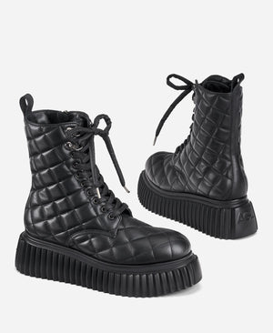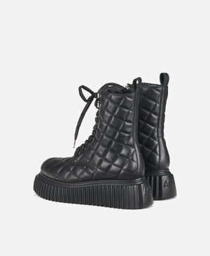 A soft leather biker ankle boot, laced at the front and accompanied by a side zipper that facilitates the already comfortable fit. The maxi sole is a unique AGL design, designed and made in Italy.