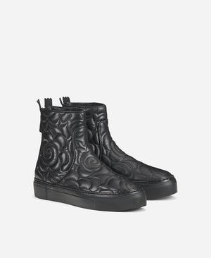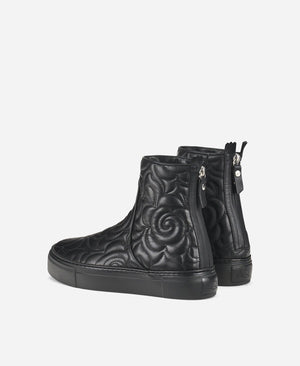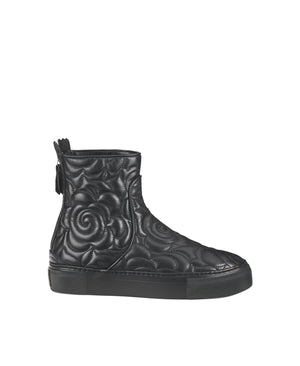 Sneaker boot with a quilted floral motif on the upper, and the delicate feminine touch of the AGL workshops, where skilled artisan hands enhance the creations with their expertise.