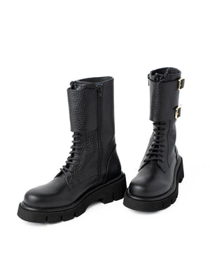 Discover the COMBA NAPPAGRAIN BLACK model from Paloma Barceló's Fall Winter 25 collection in BLACK. Made in Spain with high-quality materials such as NAPPA GRAIN (upper), Cowhide (lining), and Synthetic (sole). Perfect for the Fall Winter 25 season.