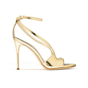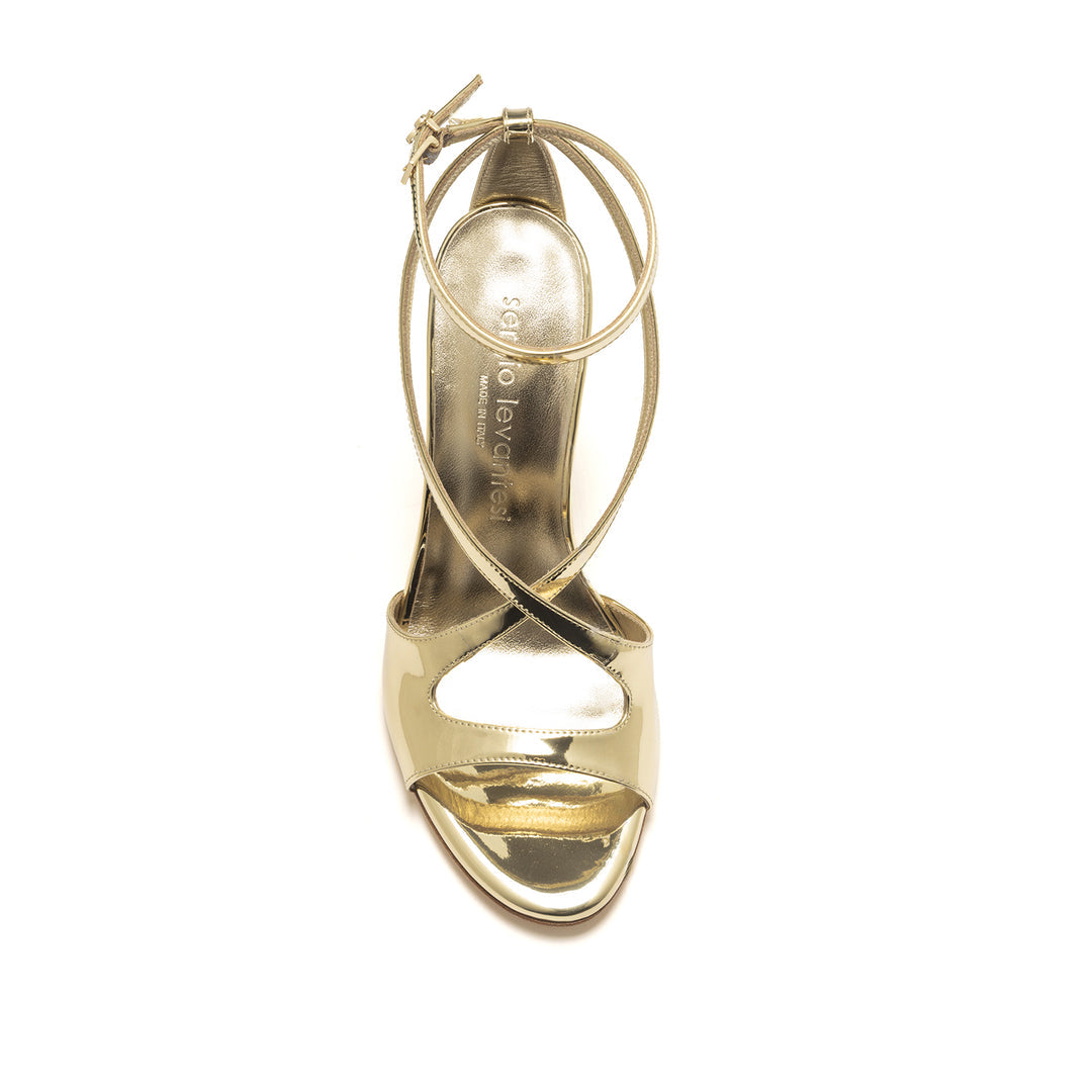 Elegant sandal with a 100 mm heel. Made from leather and eco-leather, it adds shine to every step with stable support thanks to the leather sole with a half-rubber insert. Handmade in Italy.