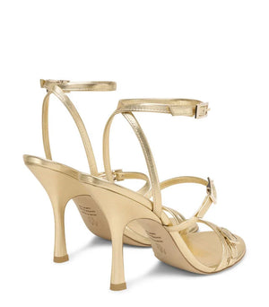 The GEORGIE 100 offers an elegant-meets-edgy take on the classic strappy sandal design. It features polished angular buckles atop sleek straps, a wraparound ankle strap and a 100-mm sculptural stiletto heel that further elevates the look without sacrificing comfort.